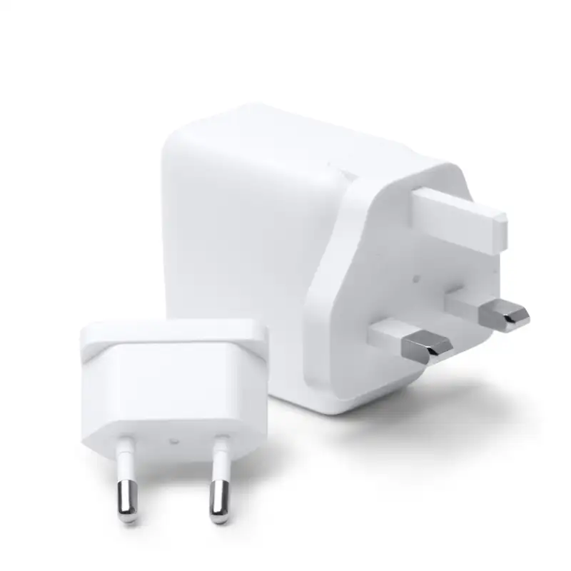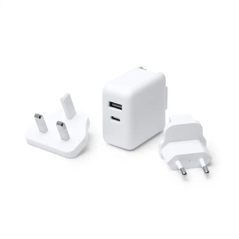 Универсален адаптер за пътуване със сменяеми конектори, подходящ за Европа, Великобритания, Азия, САЩ и Австралия.