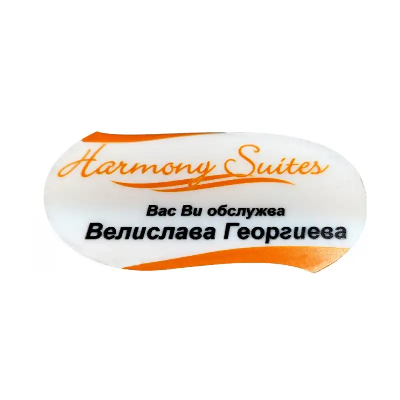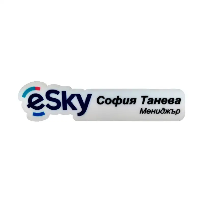 Този модел е върховото решение за обекти, които залагат на ярка визуална идентичност и креативност. Изработен от солиден 3 мм плексиглас, баджът позволява прецизно рязане по контура на вашето лого или специфична форма, съчетано с висококачествен пълноцветен печат. Това го прави изключително атрактивен за ресторанти, хотели и модерни търговски обекти, където детайлите имат значение.
