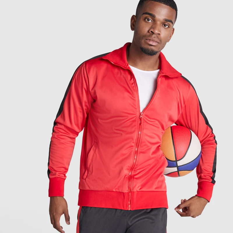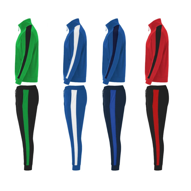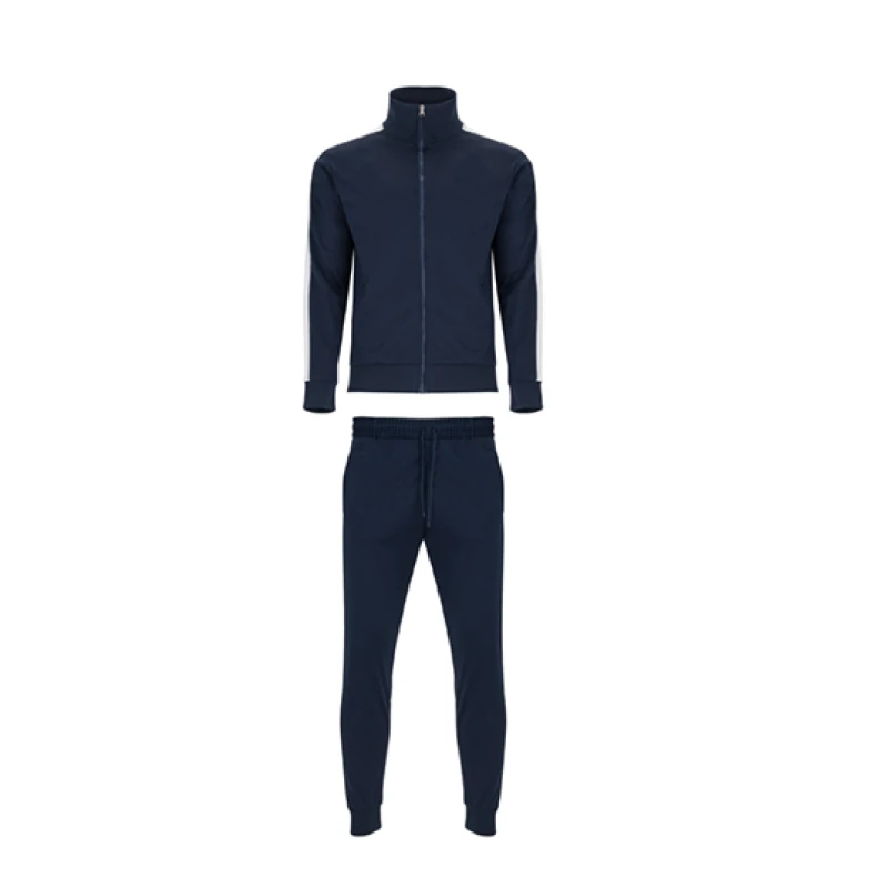 Горнището има висока яка, цял цип и два скрити странични джоба, а долнището разполага с ластична талия, връзки и джобове за удобство при движение.