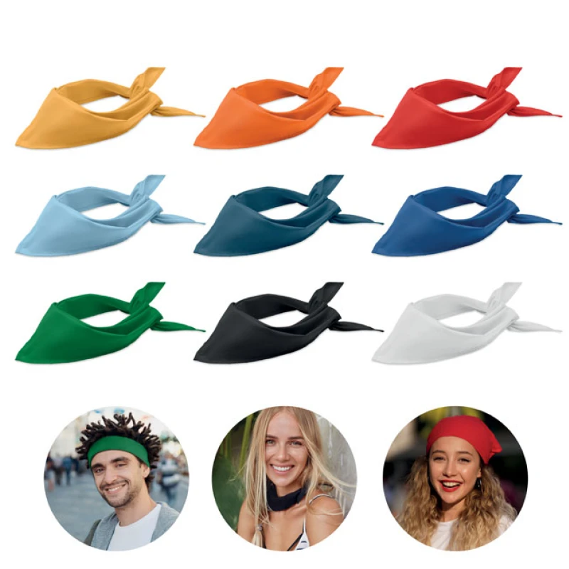 Многофункционална бандана с триъгълна форма, изработена от полипамук (90% полиестер, 10% памук) с размери 87 x 44 см.