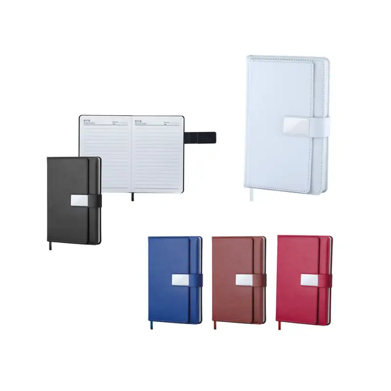 Елегантен бележник с твърда корица от PU материал и минималистичен дизайн, подходящ за ежедневни записки в офиса, на срещи или за лична употреба. Разполага със 112 линирани листа в цвят слонова кост, удобен разделител и магнитно закопчаване.