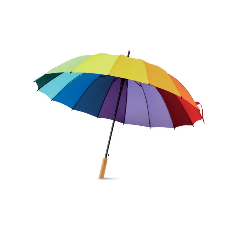 „Рейнбоу“ е впечатляващ 27-инчов автоматичен чадър с 16 панела в ярки дъгови цветове, който ще внесе настроение дори в най-дъждовния ден. Изработен от висококачествен 190T понге плат, той осигурява надеждна защита от дъжд и вятър, а пъстрият му дизайн гарантира, че ще бъдете забелязани.