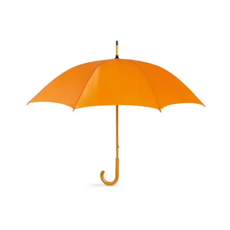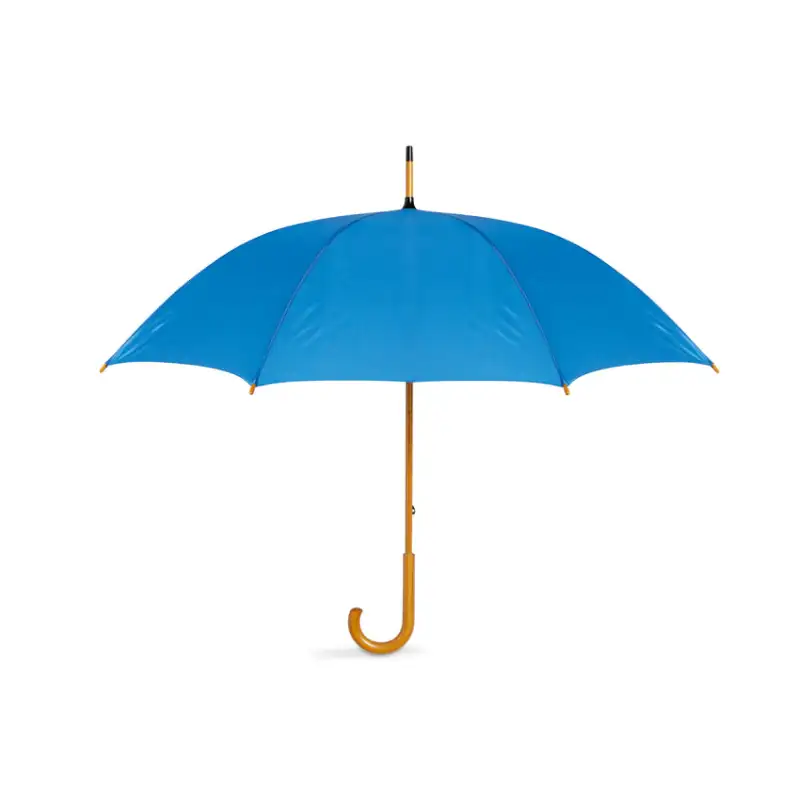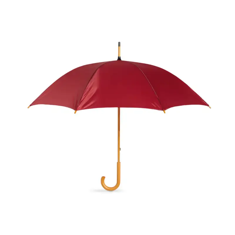 Конструкцията включва черни метални ребра за стабилност, а дървената дръжка, върхове и горна част с естествен завършек придават топъл и стилен характер. Извитата дръжка е удобна за захват и носене, а ръчното отваряне и затваряне гарантират надеждност и дълъг живот на механизма.