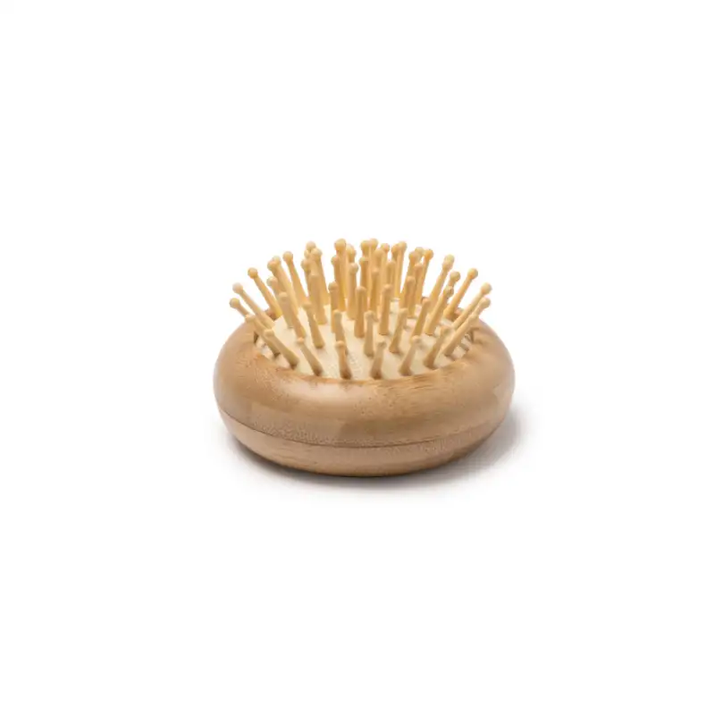 Компактна четка за коса с вградено огледало – изработена от естествен бамбук.