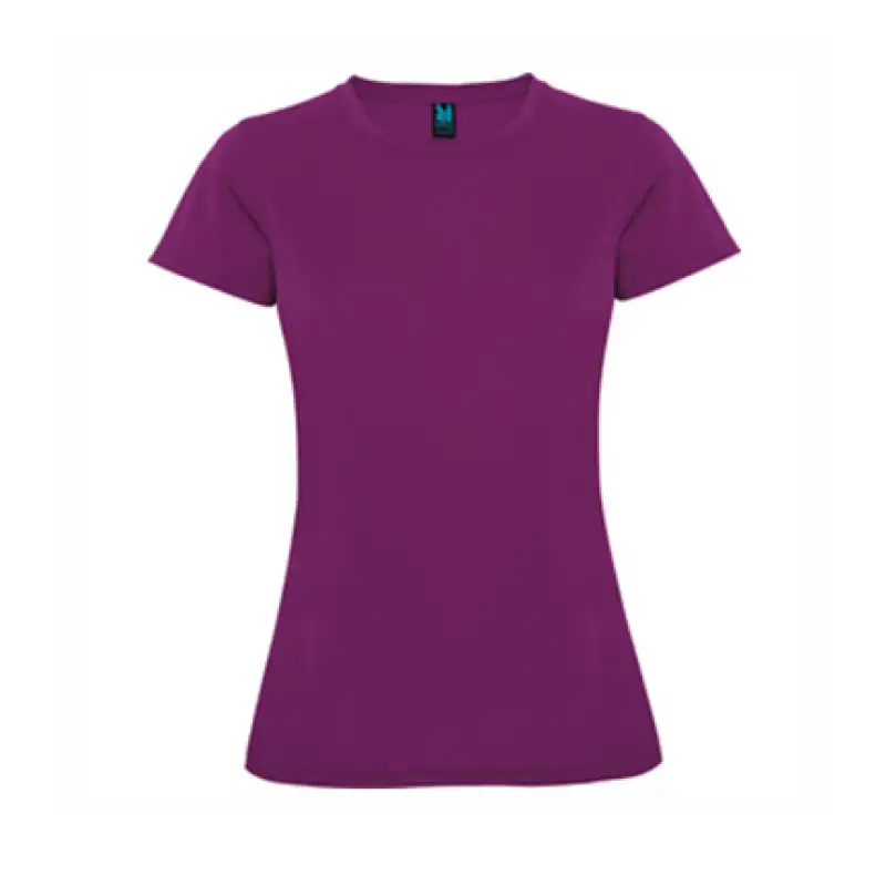 Спортна дамска тениска с реглан ръкав, изработена от 100% полиестер с плътност 145 г/м² – лека, дишаща и бързосъхнеща, подходяща за активна употреба.