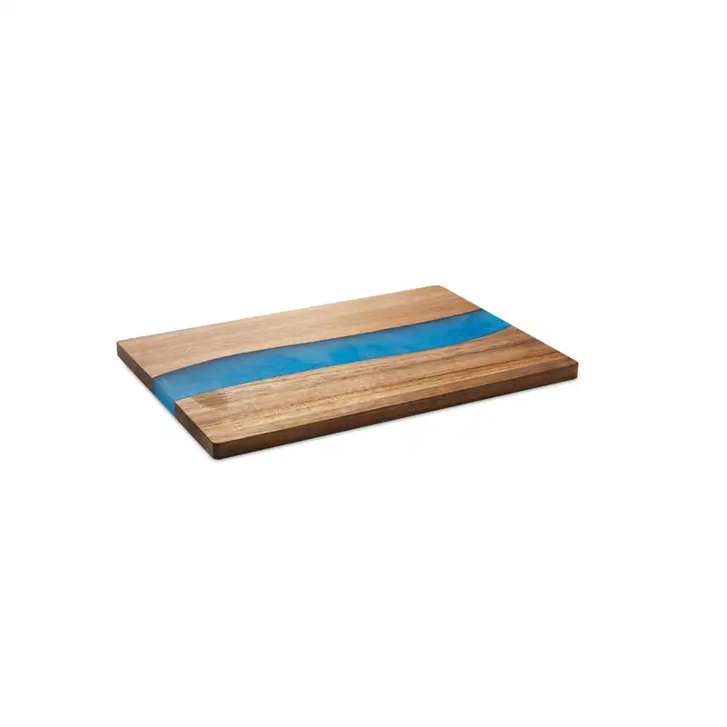 Елегантна дъска за рязане, изработена от висококачествено акациево дърво, с красиви декоративни детайли от епоксидна смола. Перфектно съчетание между естествена визия и модерен акцент, подходяща както за рязане на продукти, така и за стилно сервиране. Всяка дъска е уникална – поради естествения произход на дървото са възможни леки вариации в цвета и размера.