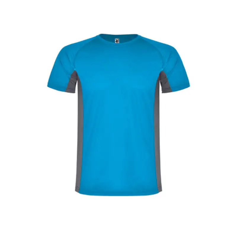 Двуцветна спортна детска тениска с реглан ръкави, изработена от 100% полиестер с плътност 140 г/м² – лека, дишаща и бързосъхнеща, идеална за активна употреба.