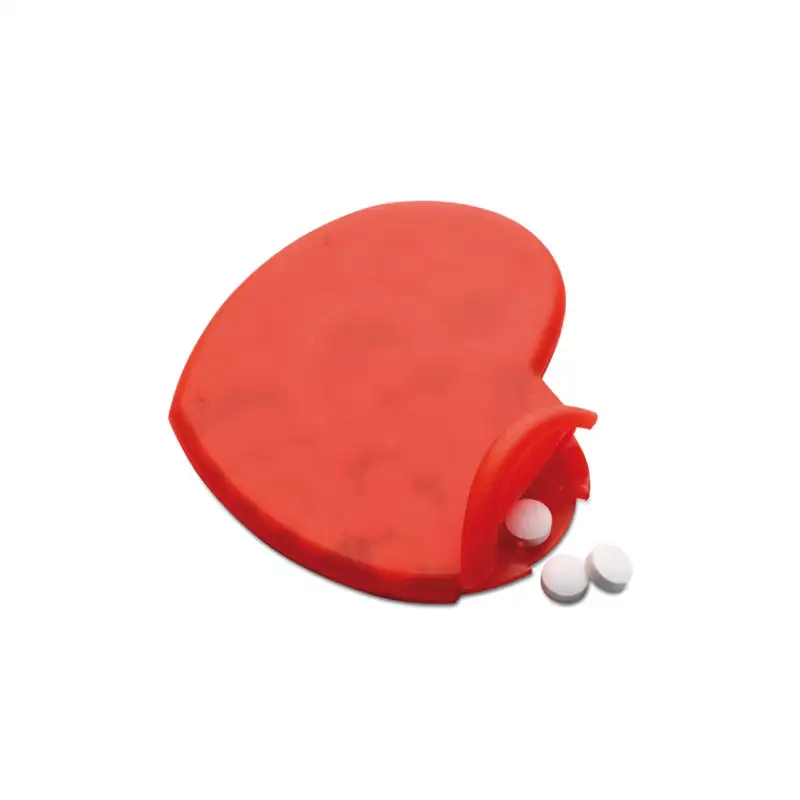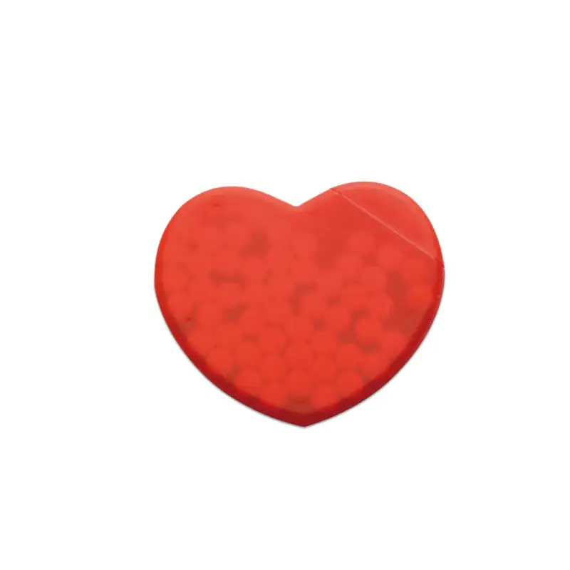 Стилен диспенсър за ментови бонбони във форма на сърце, подходящ за свежест по всяко време на деня.
