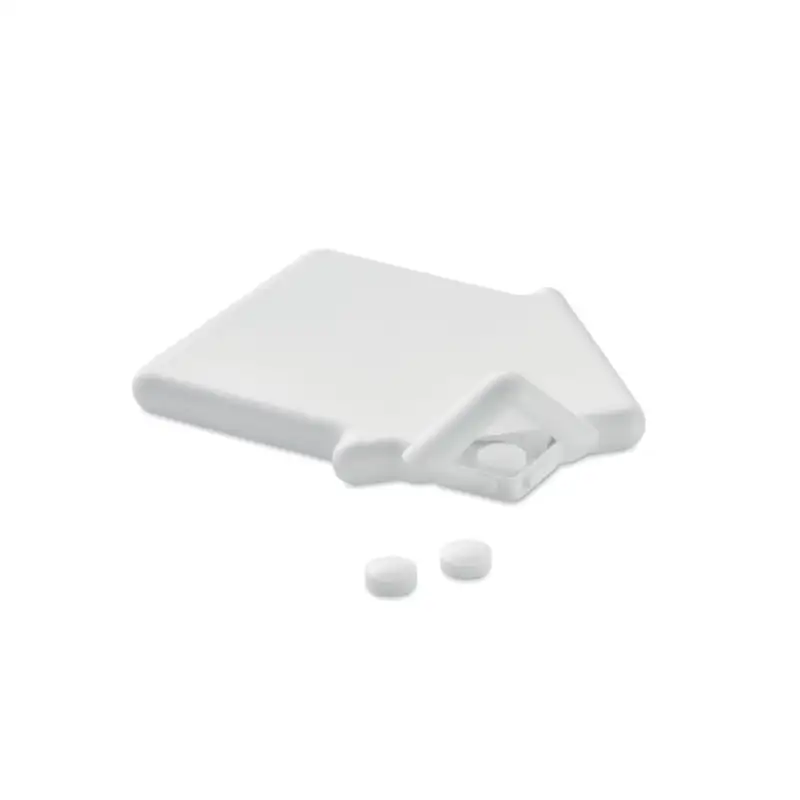 Оригинален диспенсър за ментови бонбони във форма на къща, съчетаващ практичност и атрактивен дизайн.