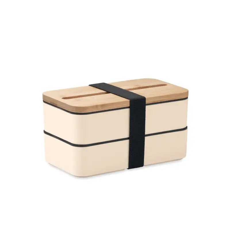 „Бамбуко Дует“ е практична двуетажна кутия за обяд от полипропилен (PP) с подвижен разделител и три прибора за хранене. Капакът е изработен от естествен бамбук и има функция за поставка за телефон, а полиестерната лента осигурява сигурно затваряне и лесно пренасяне.
