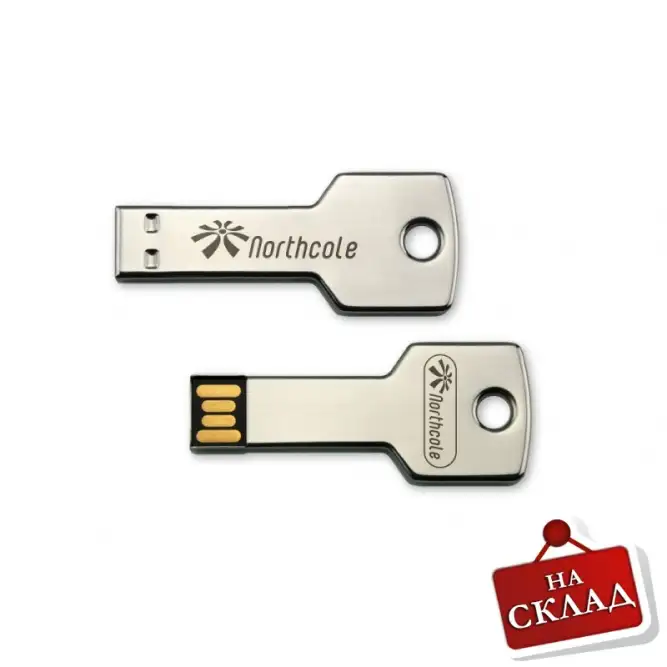 Стилна метална USB флаш памет, създадена във форма на ключ – практично и елегантно решение за съхранение на данни.