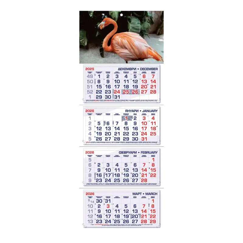 Допълнителна информация: Календарът съдържа фази на луната, именни дни, официални празници, църковни празници и международни празници – полезна информация за ежедневна организация.