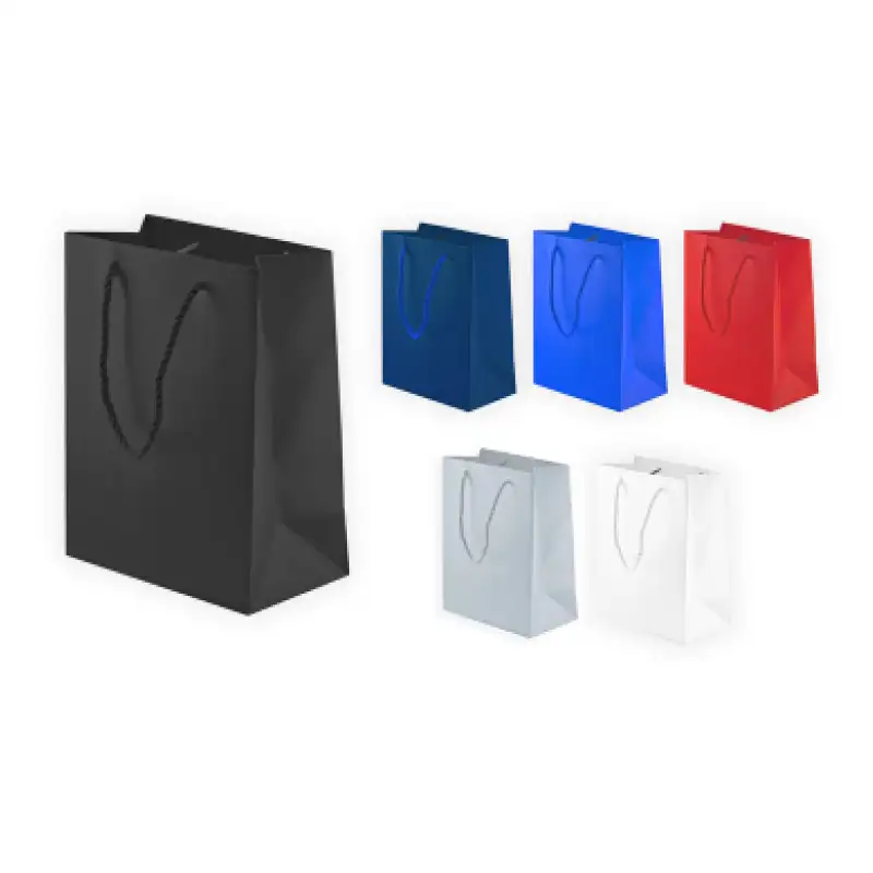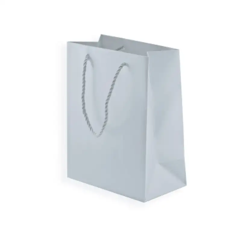 Хартиена торбичка с текстилни дръжки – стилна и удобна за опаковане на подаръци или малки продукти.