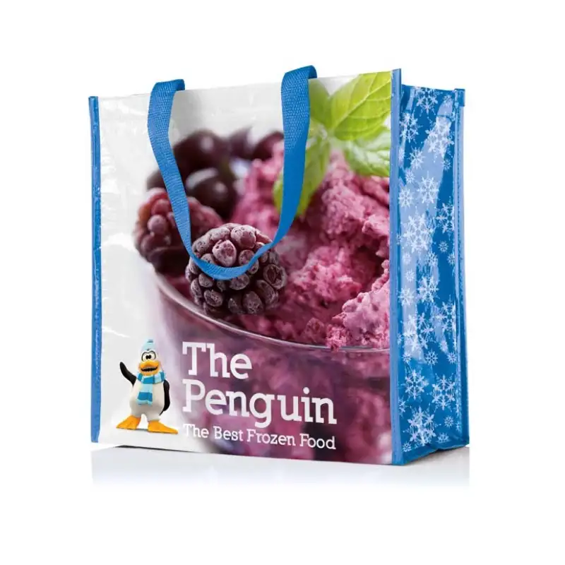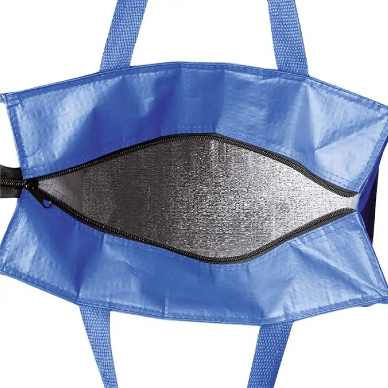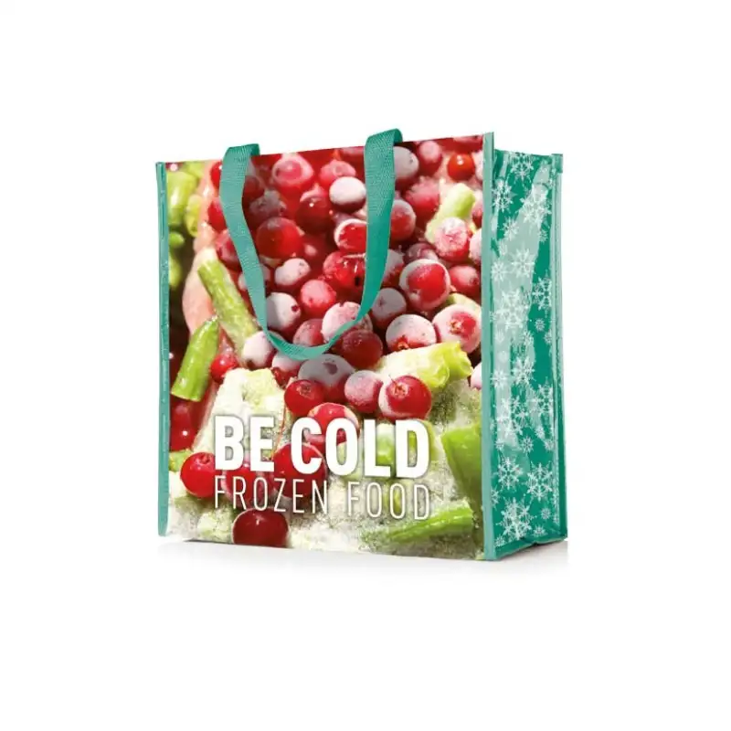 Пазарска хладилна чанта с пълноцветен печат по цялата повърхност, изработена от 140 г/м² ламиниран текстил. Подходяща за ежедневни покупки, плаж, пикник, фирмени кампании и outdoor събития. Моделът позволява избор на цветове за дръжките, ципа и ръбовете, което дава свобода за прецизно съчетаване с корпоративната идентичност.