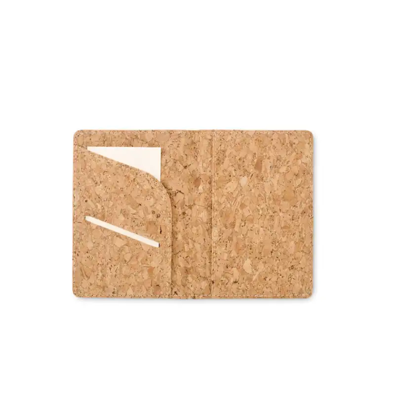 Корков калъф за паспорт с вътрешно отделение за карти.