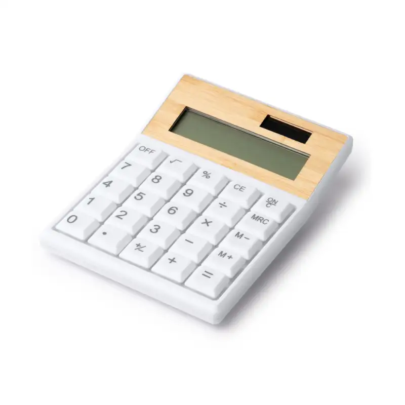 Калкулатор „ЕкоБаланс“ е стилен и екологичен 8-цифрен калкулатор, изработен от рециклиран ABS и естествен бамбук. Съчетава функционалност и устойчив дизайн, като предлага надеждна работа благодарение на двойното захранване – акумулаторна слънчева енергия и включена батерия. Естественото бамбуково покритие придава модерен и природосъобразен вид, а компактният размер го прави удобен за ежедневна употреба в офиса или у дома. Предлага се в еко кутия, което го превръща и в чудесен корпоративен подарък.