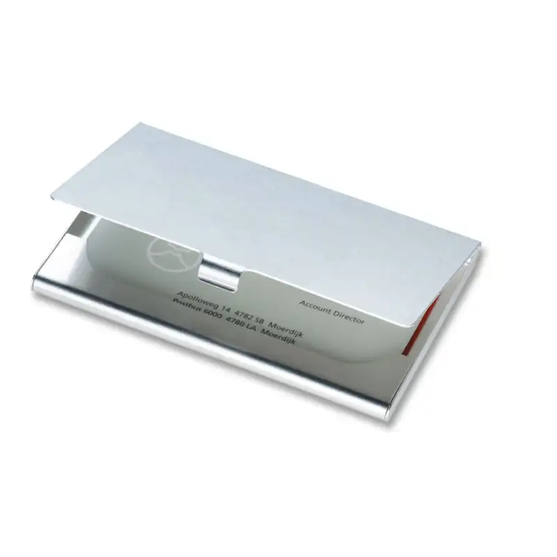 Компактният му дизайн предпазва визитките от намачкване и надраскване, а стилният метален завършек придава професионален вид.