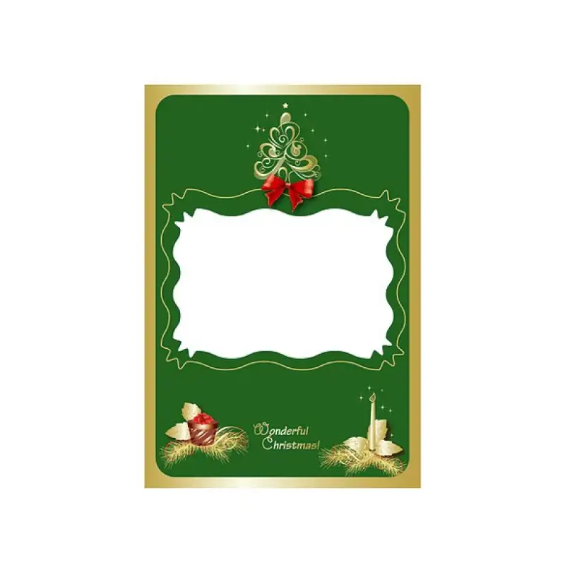 Поздравителна картичка „Празнични мотиви“, украсена с класически коледни елементи. Подходяща за корпоративни и лични пожелания, тя носи топло празнично настроение. Включва стандартен бял плик, а по желание могат да се добавят луксозни варианти от перлени, релефни или цветни хартии. Възможност за персонализация с фирмено лого и празнични послания.