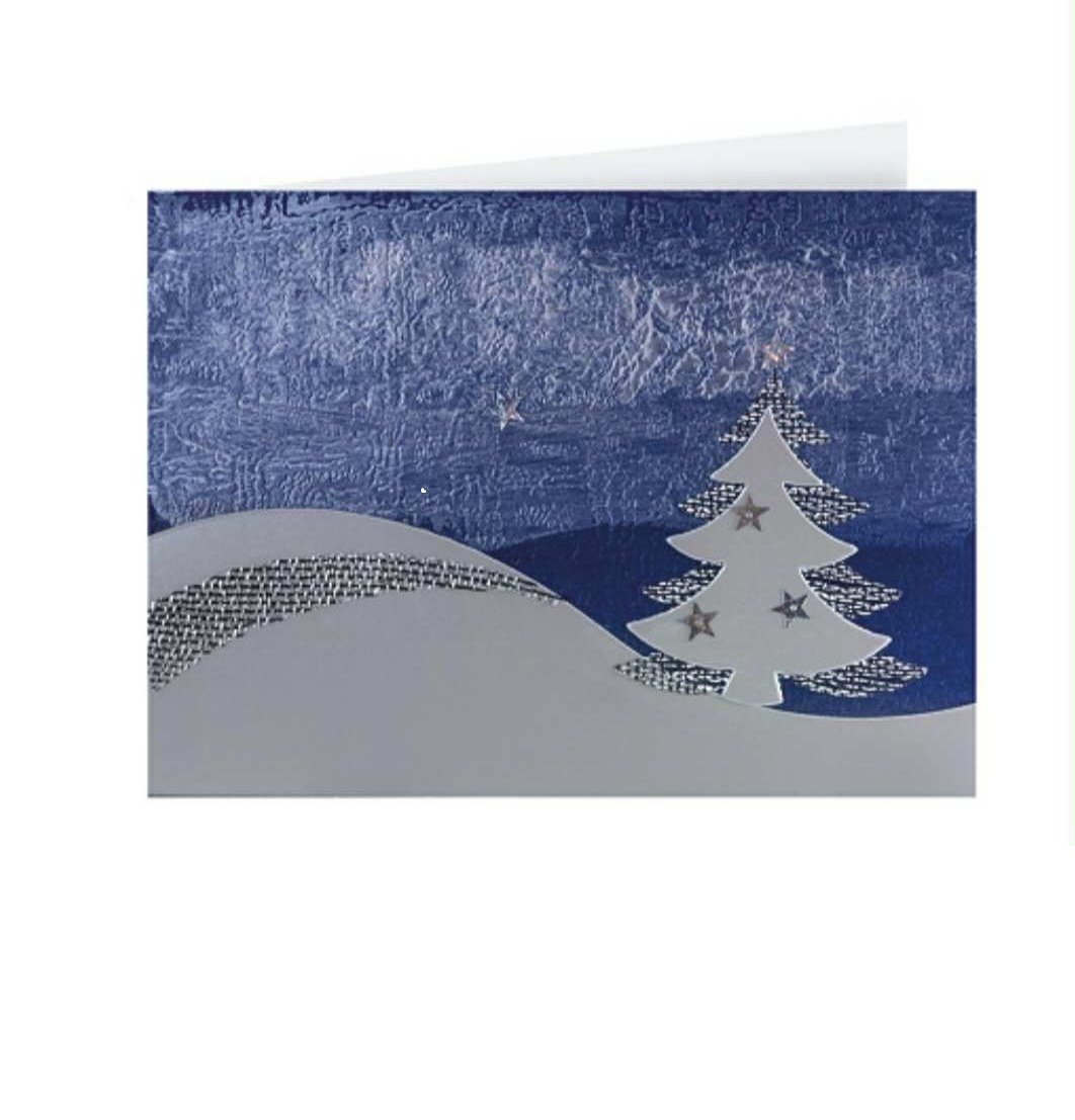 Ръчно изработени коледни картички – всяка от тях е създадена на ръка чрез лепене, връзване, нанасяне на брокат, изрязване… Картичките са предварително изработени, но в ограничени серии (около 100 броя). В нежна зимна визия, моделът „Снежна приказка“ носи усещане за магия, празничност и уют. Подходяща е както за корпоративни поздрави, така и за лични пожелания. Към всяка картичка получавате безплатен бял плик, а по желание могат да се добавят луксозни варианти от перлени, релефни или цветни хартии.