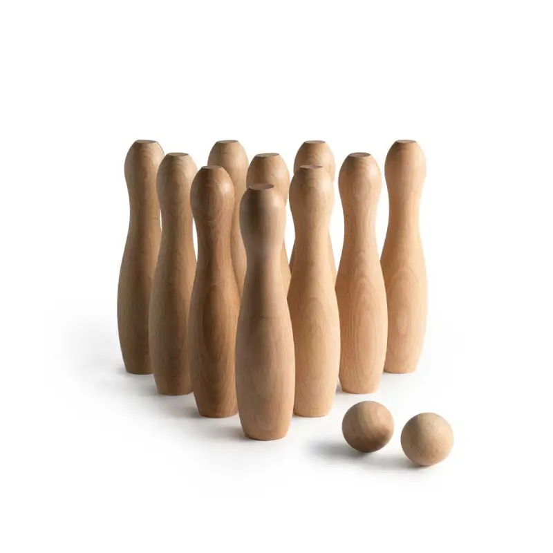 „Дървени кегли“ е класическа игра за малки и големи, която носи забавление у дома, в градината или на открито. Комплектът включва 10 кегли и 2 топки, изработени от висококачествен дървен материал. За удобство е добавена памучна торбичка с дръжки за лесно пренасяне, а продуктът е представен в еко дизайн кутия – практично и устойчиво решение.