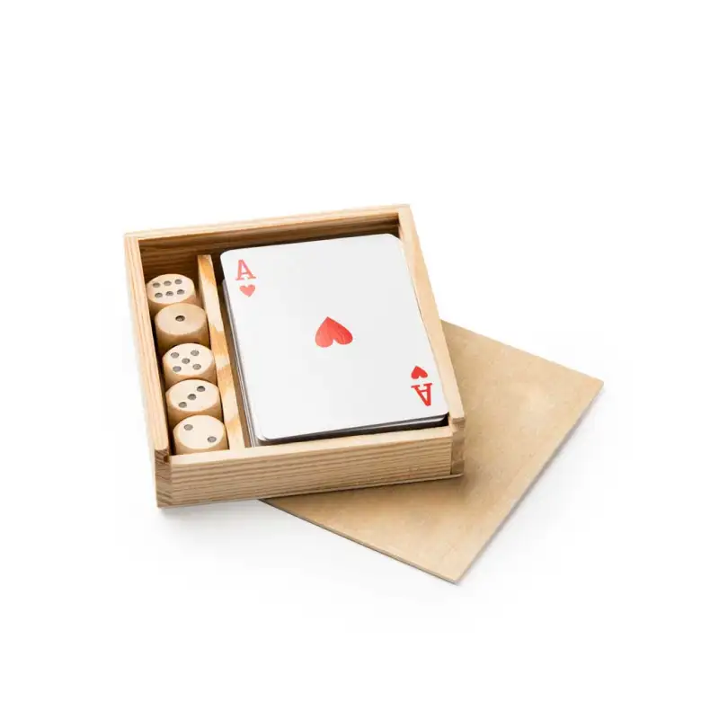 „Карти & Зарове“ е практичен комплект от две класически настолни игри – френски карти и зарове. Представен е в компактна дървена кутия, която осигурява удобство при съхранение и пренасяне. Подходящ е за семейни вечери, пътувания или подарък, като предлага безкрайни възможности за забавление и социални моменти.