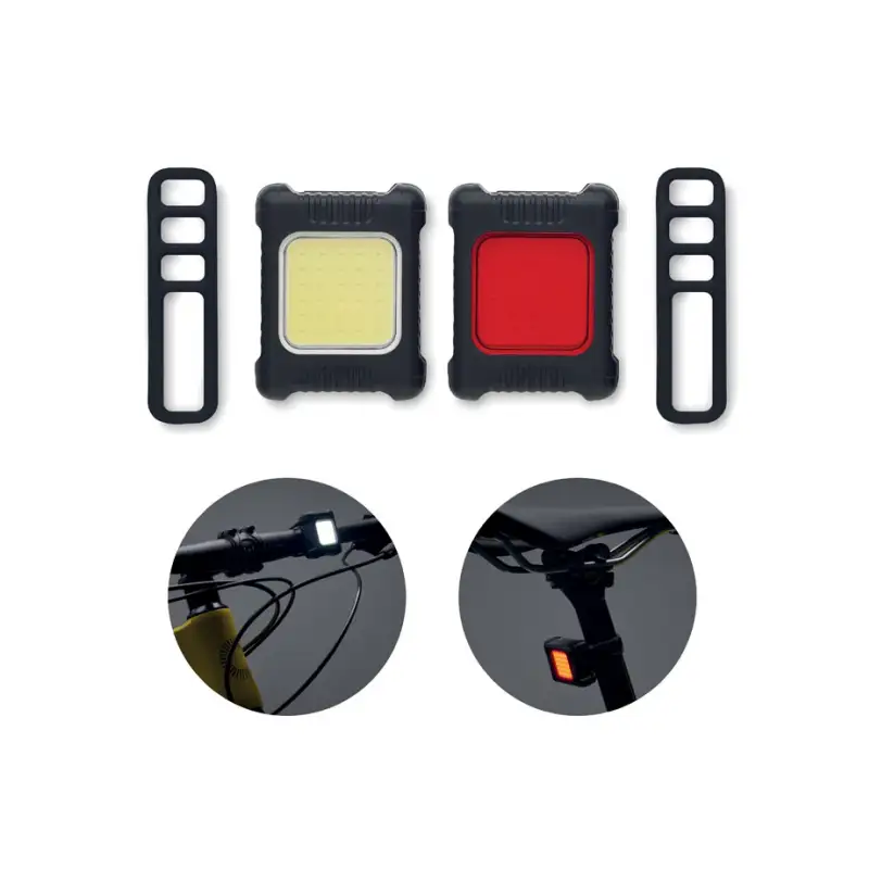 Всяка светлина е снабдена с вградена акумулаторна батерия (100 mAh), която се зарежда лесно чрез включения кабел. Монтажът е бърз и удобен благодарение на 2-те силиконови ленти, които позволяват стабилно закрепване към различни части на велосипеда.