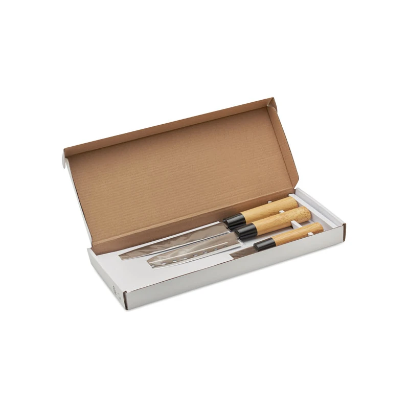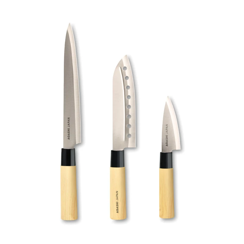 Подарете на кухнята си изисканост с „Самурай Стил“ – комплект от 3 ножа в японски стил, представени в елегантна подаръчна кутия.