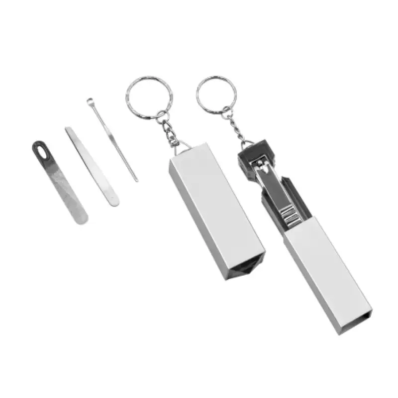 Удобен и практичен комплект за маникюр в пластмасов калъф с вграден ключодържател – идеален за пътуване или ежедневна употреба.