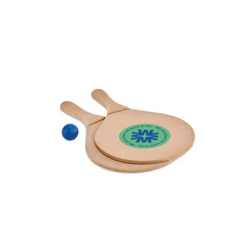 Този комплект за плажен тенис е идеалното допълнение към летните забавления на плажа, в парка или дори в градината. Състои се от 2 здрави ракети, изработени от MDF материал, и 1 мека топка, която осигурява безопасна и приятна игра. Комплектът се предлага в мрежеста памучна торбичка със стягаща връзка, което го прави удобен за носене и съхранение.
