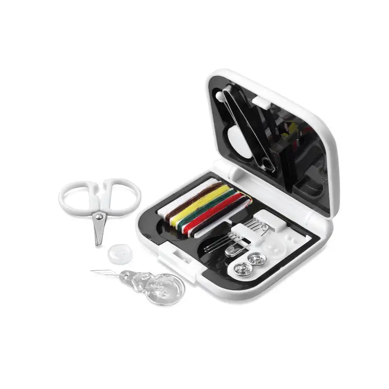 Компактен комплект за шиене с всички основни аксесоари, от които може да имате нужда у дома или по време на пътуване. Подреден в удобна пластмасова кутия, този комплект е практичен помощник при дребни поправки на дрехи, копчета или шевове.