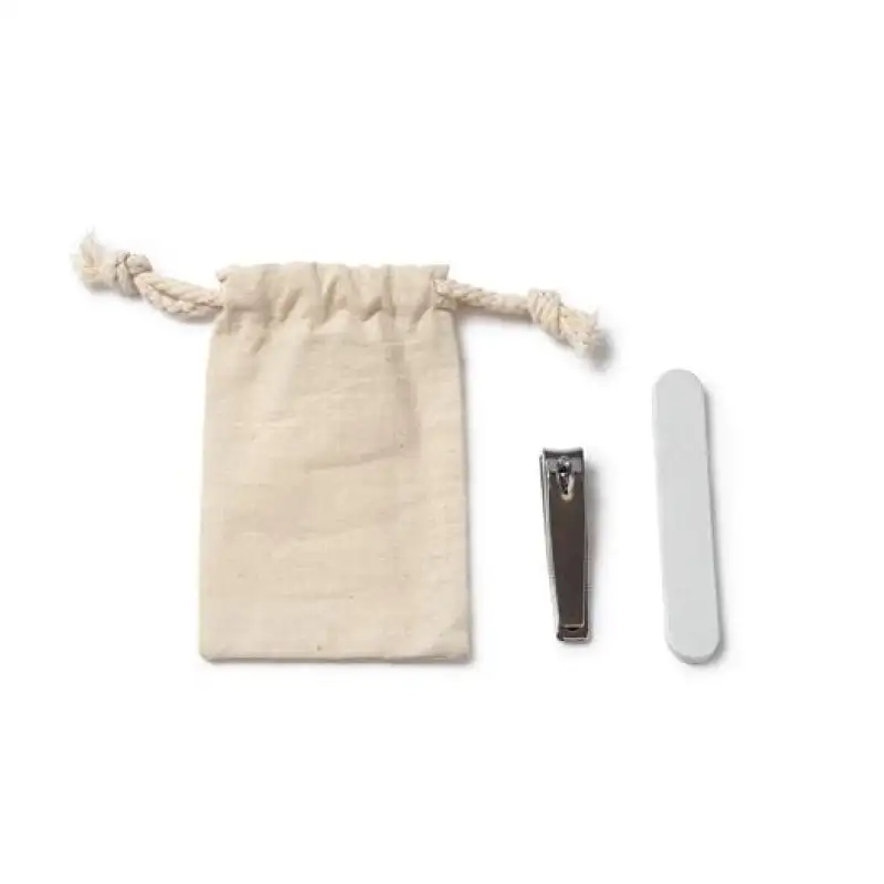 Комплект за маникюр, представен в практична памучна торбичка с шнур – лек, удобен и подходящ за грижа в движение.