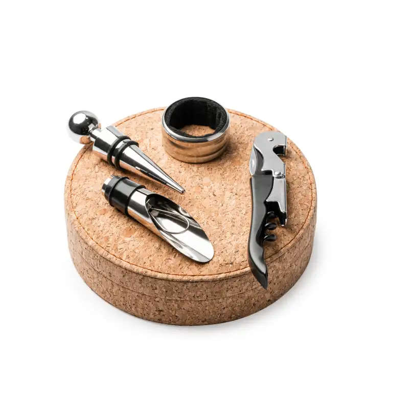 Комплект за вино „Елеганс“ включва всички необходими аксесоари за перфектното винено изживяване. Изработен от висококачествена неръждаема стомана и корк, той съдържа:
