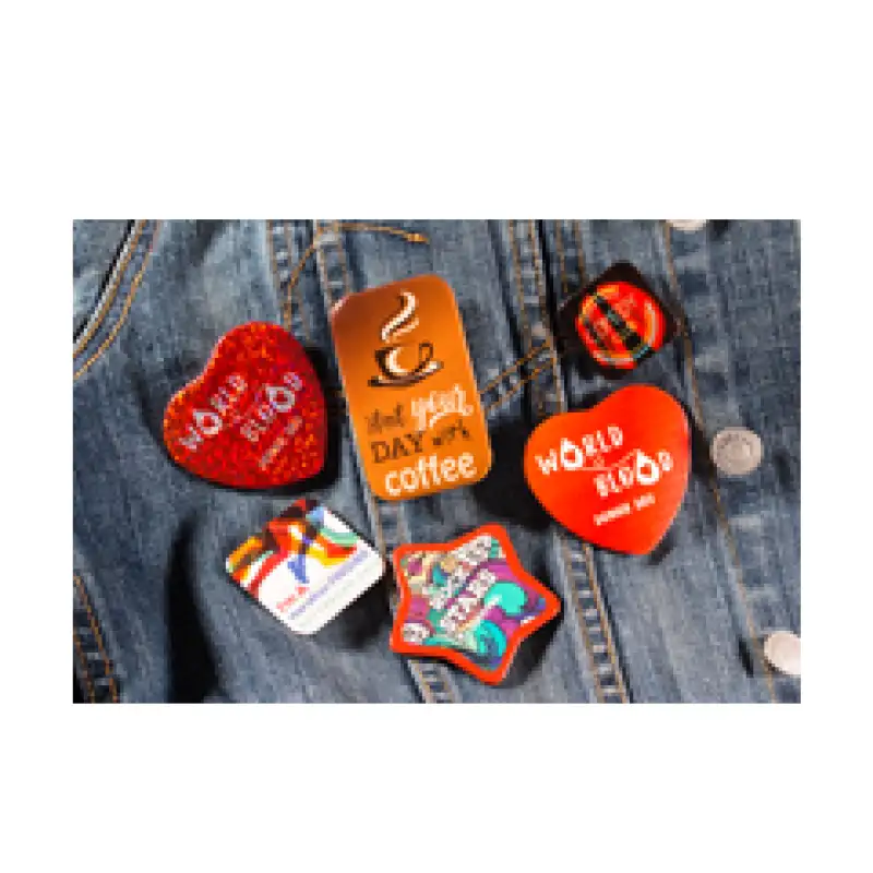 Баджът се закрепва лесно и сигурно чрез класическа безопасна игла на гърба, което го прави подходящ за униформи, работно облекло, конференции, фестивали, кампании и рекламни активности. Лек е, удобен за носене и не поврежда дрехите при правилно поставяне.