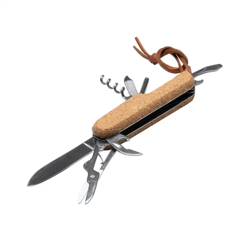 „Корво“ е елегантен и практичен мултифункционален инструмент, който съчетава здравината на неръждаемата стомана с естествения чар на корковата дръжка. Със своите 9 функции той е надежден помощник в ежедневието, при пътувания или къмпинг. Включената кожена каишка улеснява носенето, а екологичната кутия го превръща в стилен и устойчив подарък.