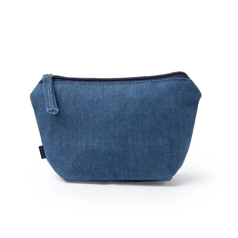 Практичен и стилен несесер с цип, изработен от рециклиран дънков плат.