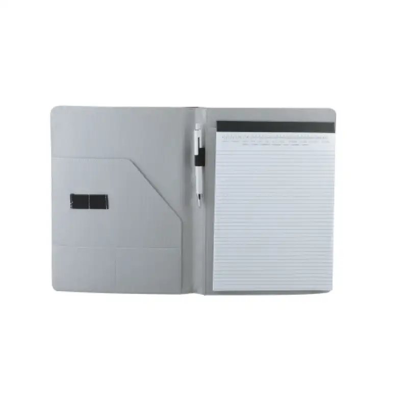 Съдържа линиран бележник A4 с 20 листа, примка за химикалка и вътрешни отделения за документи – всичко необходимо за организиране на срещи, обучения или ежедневни задачи.