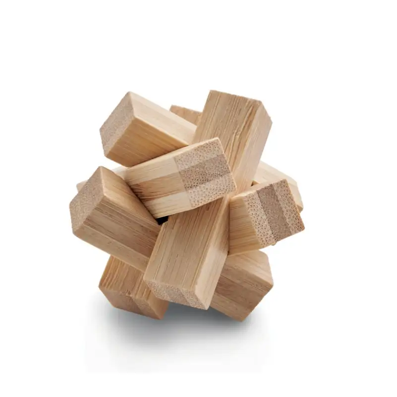 „Хармонична звезда“ е стилен пъзел-загадка във формата на звезда, изработен от естествен материал. Той е едновременно логическа игра, която развива концентрацията и търпението, и красива декорация за бюро или дом. Благодарение на естествената си структура, всеки артикул е уникален – възможни са леки вариации в цвета и размера, които подчертават автентичността му. Пъзелът е представен в кутия от рециклирана хартия, което го прави и екологично отговорен избор.