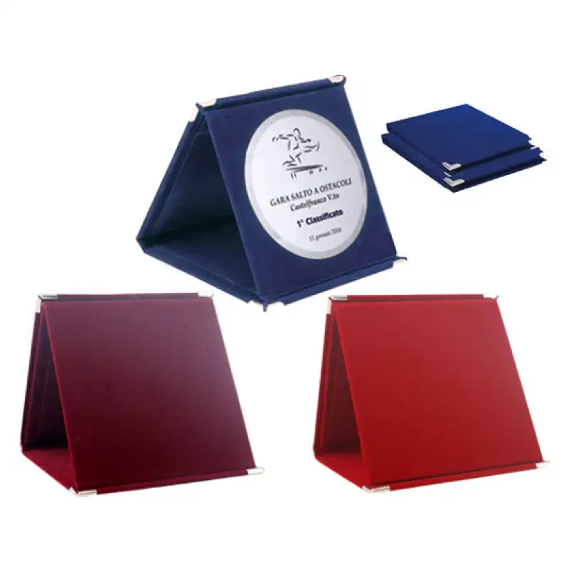 Елегантен плакет с луксозно кадифено покритие и стилни метални ъгли по краищата, създаден за престижни отличия и награди.