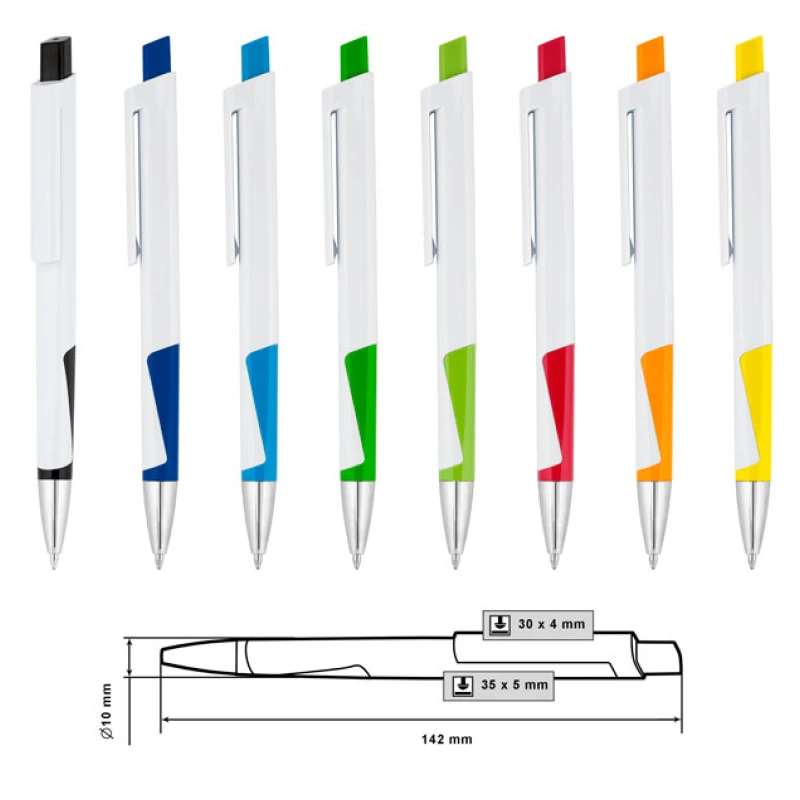 Химикалката „Вектра“ съчетава изчистен дизайн и функционалност, което я прави отличен избор за ежедневна употреба и рекламни кампании. Изработена от висококачествена пластмаса, тя предлага удобно писане и дълготрайна употреба.