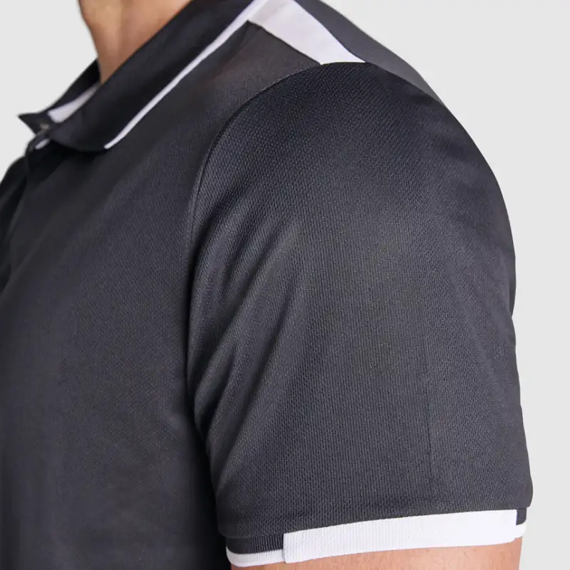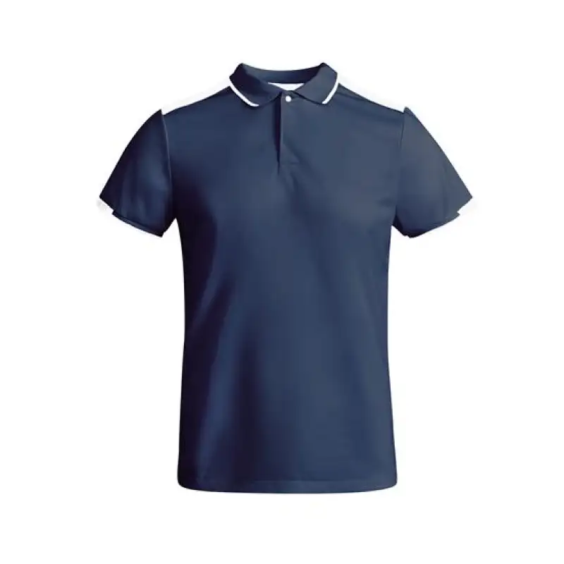 Спортна мъжка поло тениска с къс ръкав, изработена от 50% рециклиран полиестер и 50% полиестер с плътност 140 г/м² – лека, дишаща и подходяща за активна употреба.