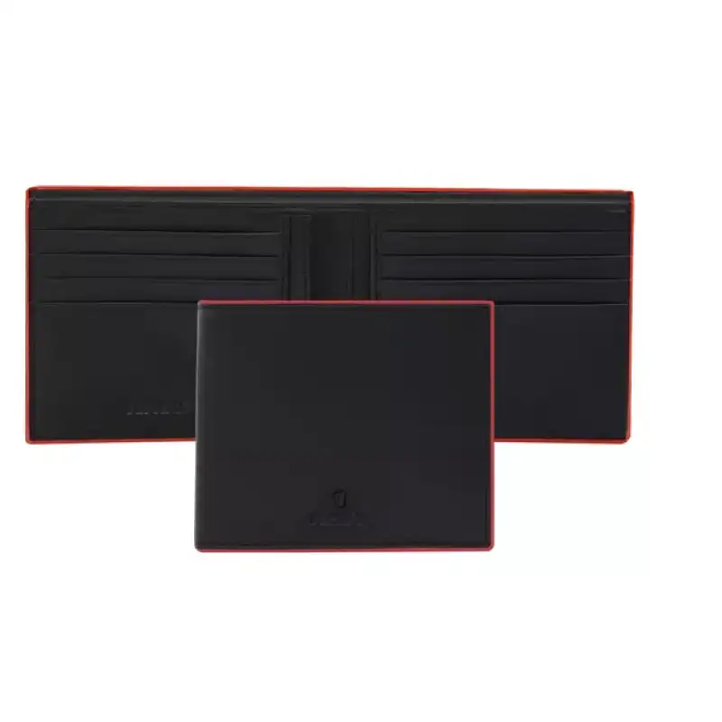 Ярките червени ръбове придават динамичен контраст и модерно излъчване. Със осем слота за карти, четири странични отделения и двойно отделение за банкноти, този портфейл предлага отлично разпределение и практичност. Идеален корпоративен подарък, който съчетава фин стил с изразен характер.