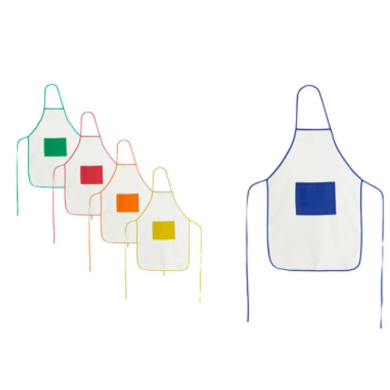 Памучна престилка с плътност 140 г/м², допълнена с цветен преден джоб и контрастен кант.