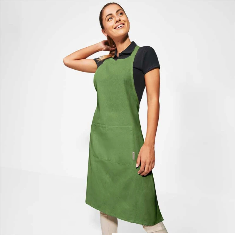 С преден джоб и регулиране през кръста, тя е практичен избор за кухня или работно място.