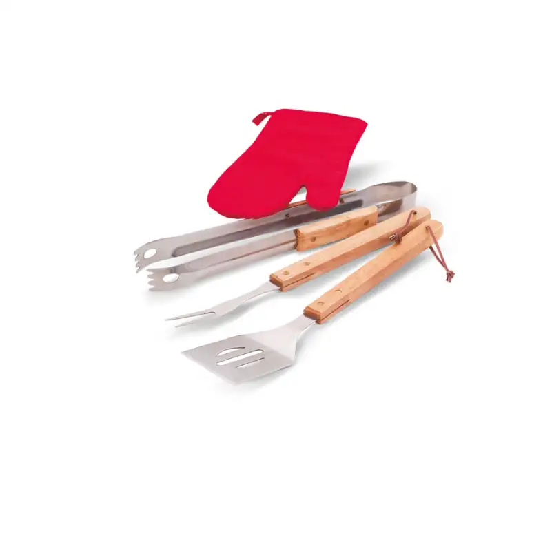 Функционална и практична престилка за барбекю, която съчетава удобство и защита. Изработена от здрав 600D полиестер, тя предпазва дрехите по време на готвене и същевременно служи като органайзер за аксесоарите. В комплекта са включени три различни инструмента за барбекю и една ръкавица, така че всичко необходимо е винаги под ръка.