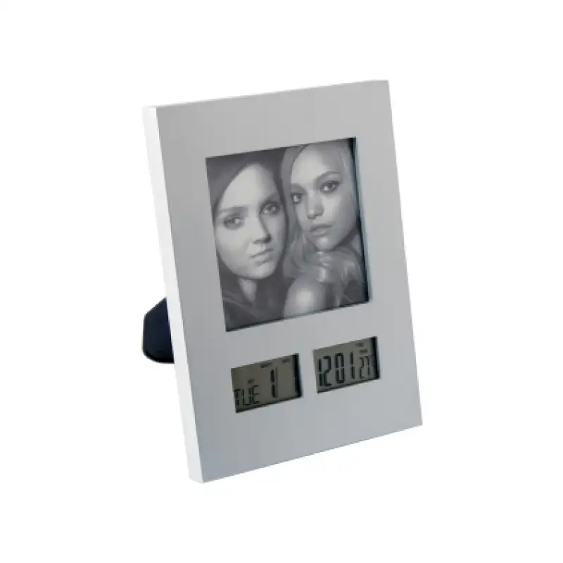 Многофункционална рамка за бюро, изработена от пластмаса, комбинирана с часовник. Идеална за поставяне на любима снимка на работния плот или нощното шкафче.