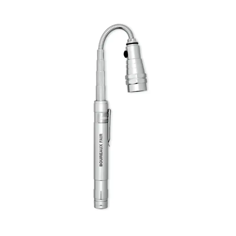 „МагЛайт Про“ е практичен и издръжлив разтегателен фенер, изработен от алуминий, който комбинира мощност и удобство в компактен дизайн. С 3 LED светлини осигурява ярко осветяване, а магнитът в горната част позволява лесно захващане на метални предмети или закрепване върху повърхности. Страничната щипка улеснява носенето, а разтегателната конструкция достига до 57 см, което го прави идеален за труднодостъпни места. В комплекта са включени 4 батерии LR44 за готова употреба.