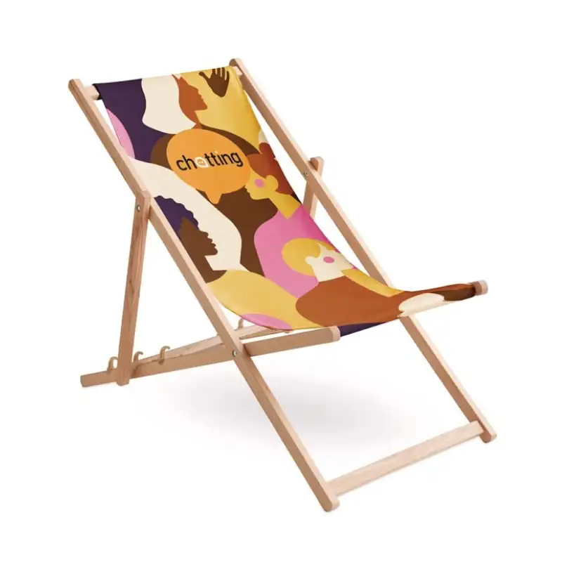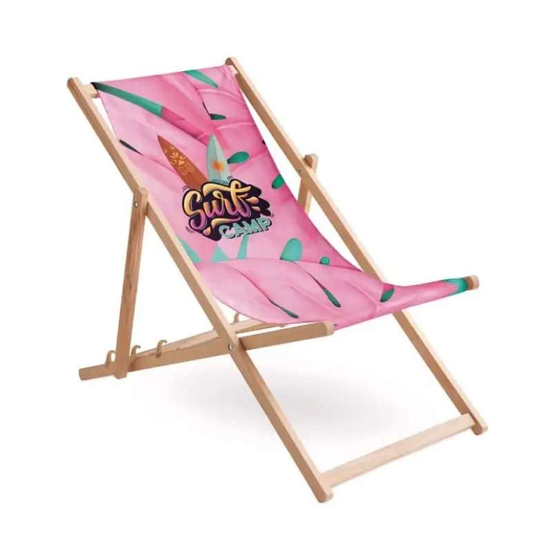 Комфортен и стилен рекламен плажен стол с пълноцветен печат върху цялата текстилна част – перфектният начин да представите своя бранд на фестивали, плажове, събития и всякакви активности на открито. Голямата печатна площ и индивидуалният дизайн превръщат стола в силен визуален акцент и ефективен рекламен носител.