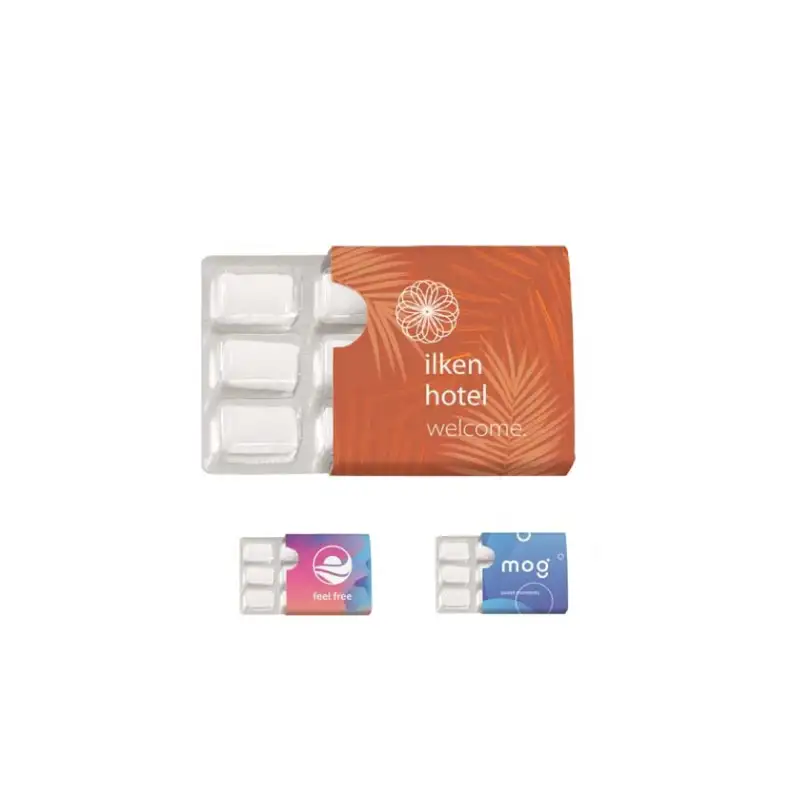 Практичен комплект беззахарни дъвки, подходящ за рекламни кампании, фирмени събития и промоционални активности.