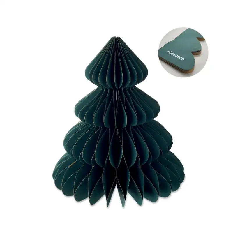 „Елхичка“ е стилна и устойчива празнична декорация, изработена от 70% рециклирана хартия, сертифицирана по FSC (FSC-C213206). Сгъваемият дизайн с магнитно закопчаване я прави удобна за съхранение и многократна употреба. Подходяща е за интериорна декорация, празнична маса или витрина.