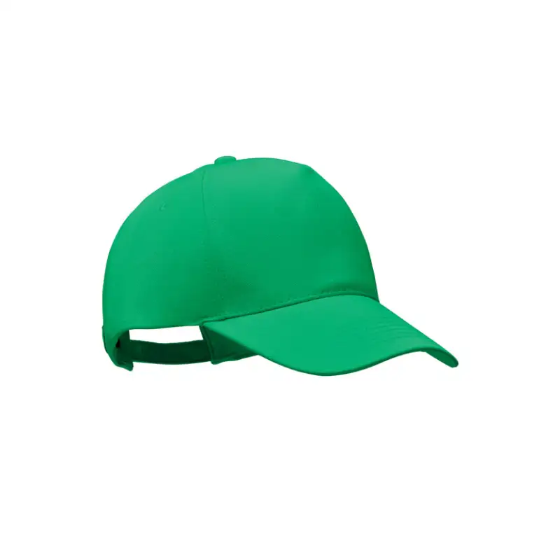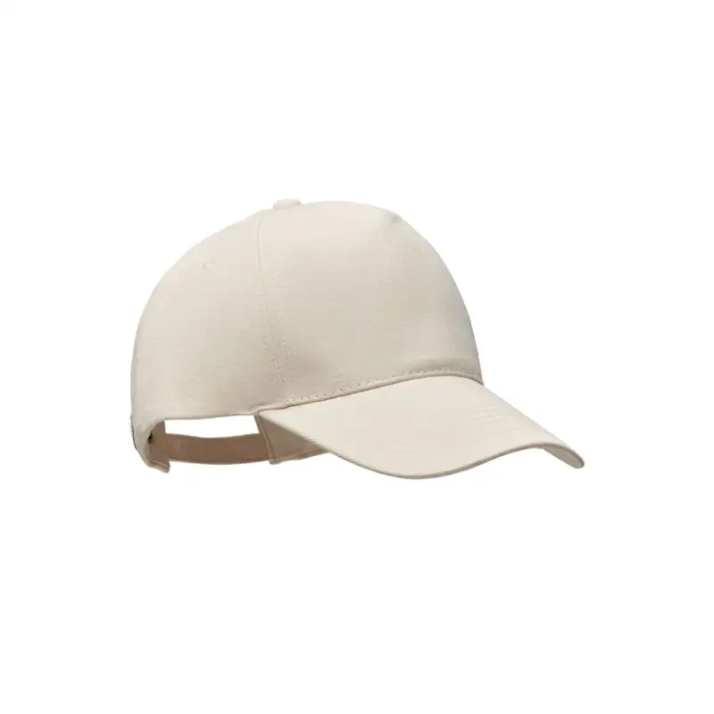 Стилна 5-панелна бейзболна шапка, изработена от органичен четкан памук с плътност 250 г/м², с метална катарама за регулиране и изчистен дизайн, подходящ за ежедневна употреба и устойчиво брандиране.